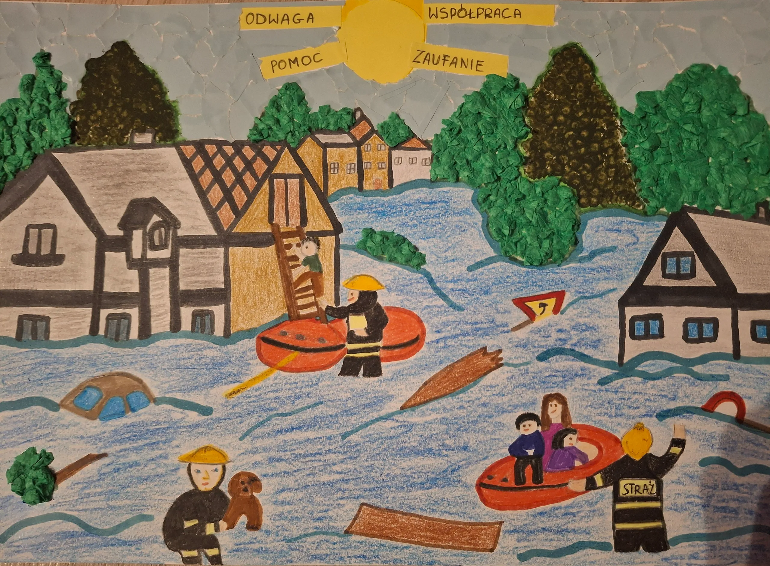 Zachęcamy dzieci wraz z rodzicami do tworzenia prac o współpracy, budowaniu silnej i odpornej społeczności, bezpieczeństwie pożarowym, pierwszej pomocy, solidarności w kryzysach.